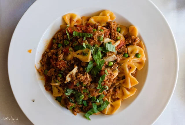 We got the Rigatoni alla Zooma (although we switched out for the hand made farfalle instead) which is housemade spicy sausage, green peas, shallots and garlic pomodoro. We also got the Rigatoni Bolognese (with hand made papardelle instead) which is a traditional housemade bolognese sauce. I really wanted Baros to try some traditional pasta sauce (and I've never made a bolognese before so it's something I wouldn't make at home).